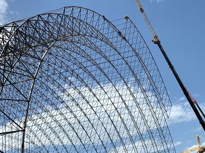 (2)网架加工前应对现场尺寸进行复测,确认无误后方可进行加工、安装;网架制作、运输、安装应遵守《空间网格结构技术规程》JGJ7-2010、《钢网架启东螺栓球节点》JG/T 10-2009、《钢网架启东螺栓球节点用高强度螺栓》 GB/T 16939-2016、《启东钢结构启东工程启东施工规范》 GB50755-2012、《启东钢结构启东工程施工质量验收标准》 GB50205-2020。